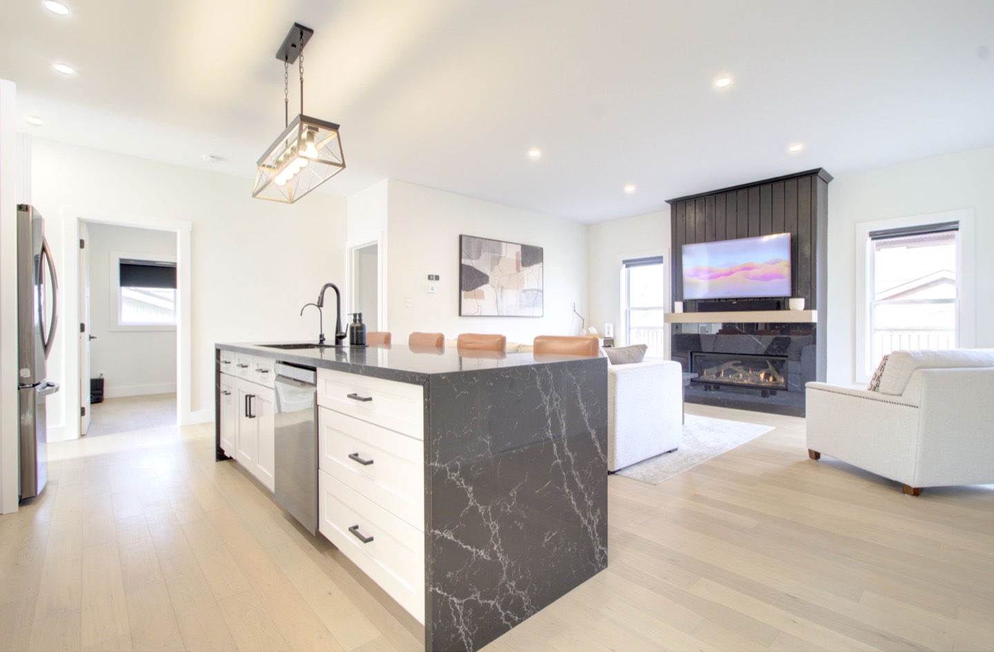 Welcome to 134 Aiken Street in Meaford, a stunning newly built 3 bedroom, 1 bathroom detached raised bungalow boasting 1,054 square feet of meticulously designed living space on the main level, set on a desirable corner lot. Step inside to an open-concept kitchen featuring sleek black stainless-steel appliances, gleaming quartz countertops, a dramatic waterfall island, custom cabinetry and a matching quartz backsplash. Enjoy soaring 9-foot ceilings on both the main level and basement, smooth finishes throughout, elegant hardwood floors, a cozy natural gas fireplace, front-load Electrolux washer and dryer, recessed lighting in the main living areas and soffit pot lights for added ambiance. Step out to the expansive elevated deck, ideal for entertaining. Superior construction includes Rockwool insulation in all exterior walls and the garage, a robust 200-amp electrical service and a 30-amp exterior plug ideal for trailers, RVs or EVs. The attached garage offers practical interior access with an automatic garage door opener for added convenience. With plumbing rough-in for a second bathroom and electrical roughed-in in the basement, it's ready for your personal finishing touches. Just steps from the Georgian Bay waterfront, near excellent schools and minutes from downtown Meaford, this home spares no expense with premium craftsmanship and features, making it an exceptional opportunity for modern living. Discover your dream home, move in and start living the lifestyle you deserve!