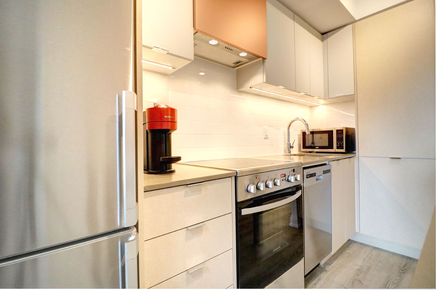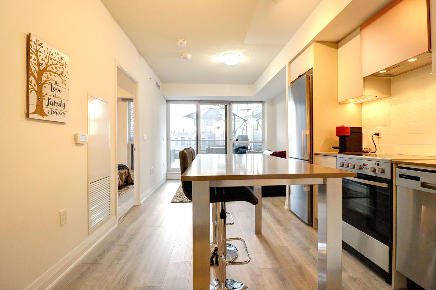 Spacious & bright one bedroom suite in the heart of Etobicoke with a 230 sq ft terrace & gas BBQ hookup. Fully open concept, unobstructed western exposure with floor to ceiling windows. Walking distance to Cloverdale Mall, grocery stores, TTC, parks, schools & more! Amenities include a full gym, outdoor pool, sauna, yoga studio, rooftop terrace with BBQs, party room, media room, co-working space, a kids zone & a playground. Parking included. Shuttle service to Kipling Subway. Move in and enjoy! Extras: All appliances, front load washer & dryer, electrical light fixtures and window coverings.